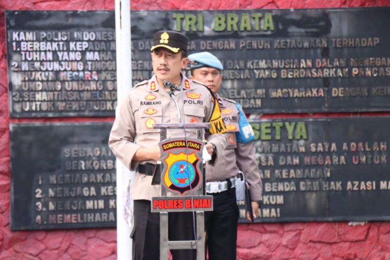 ” Tingkatkan kualitas keimanan kepada Tuhan Yang Maha Esa, sebagai landasan moral dan etika dalam pelaksanaan tugas. Saling ingatkan dan waskat terhadap personil secara berjenjang agar dapat meminimalisir adanya pelanggaran. Budayakan responsibilitas terhadap apa yang terjadi sekeliling kita untuk memberikan citra positif terhadap polri. Tingkatkan kesiapsiagaan operasional, untuk mengantisipasi eskalasi perkembangan situasi yang meningkat secara cepat. Jalin kerjasama dan kekompakan dengan unsur TNI, dan jaga solidaritas TNI-POLRI untuk bersinergi menjaga kedaulatan NKRI,”sambuh Kapolres Binjai.